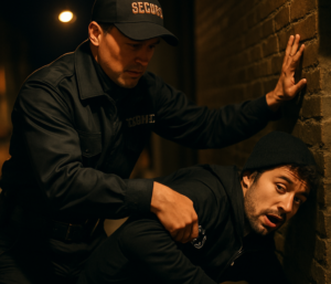 En poste de nuit en doublon, vous vous trouvez face à un individu qui a fracturé la fenêtre d'un bureau et qui a dans les mains un ordinateur portable, il prend la fuite en restant sur le site :